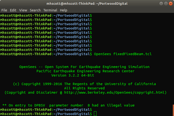 Unfortunately, working with fixed-fixed beams is easier said than done in OpenSees because many of the equation solvers just can’t handle the fact that there are no equations to solve, i.e., there are no unconstrained degrees of freedom. (It’s not the solver routines that cause problems, it’s the OpenSees code that wraps those routines that causes problems.)