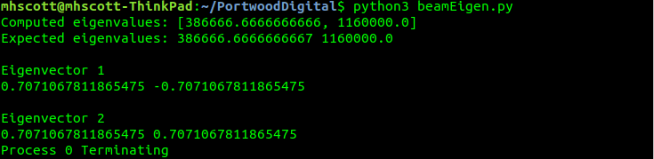 There are three applications of eigenvalue analysis in structural engineering. Vibration analysis and buckling analysis involve generalized eigenvalue analysis. OpenSees does vibration eigenvalue analysis pretty well, but does not perform buckling eigenvalue analysis–although you might be able to fake the geometric stiffness matrix for simple frame models.