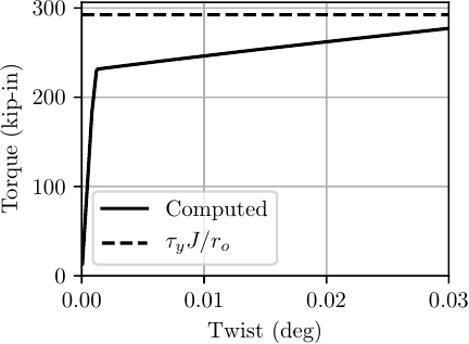 The torque-twist relationship is shown below, where the simulated results match the expected yield torque .