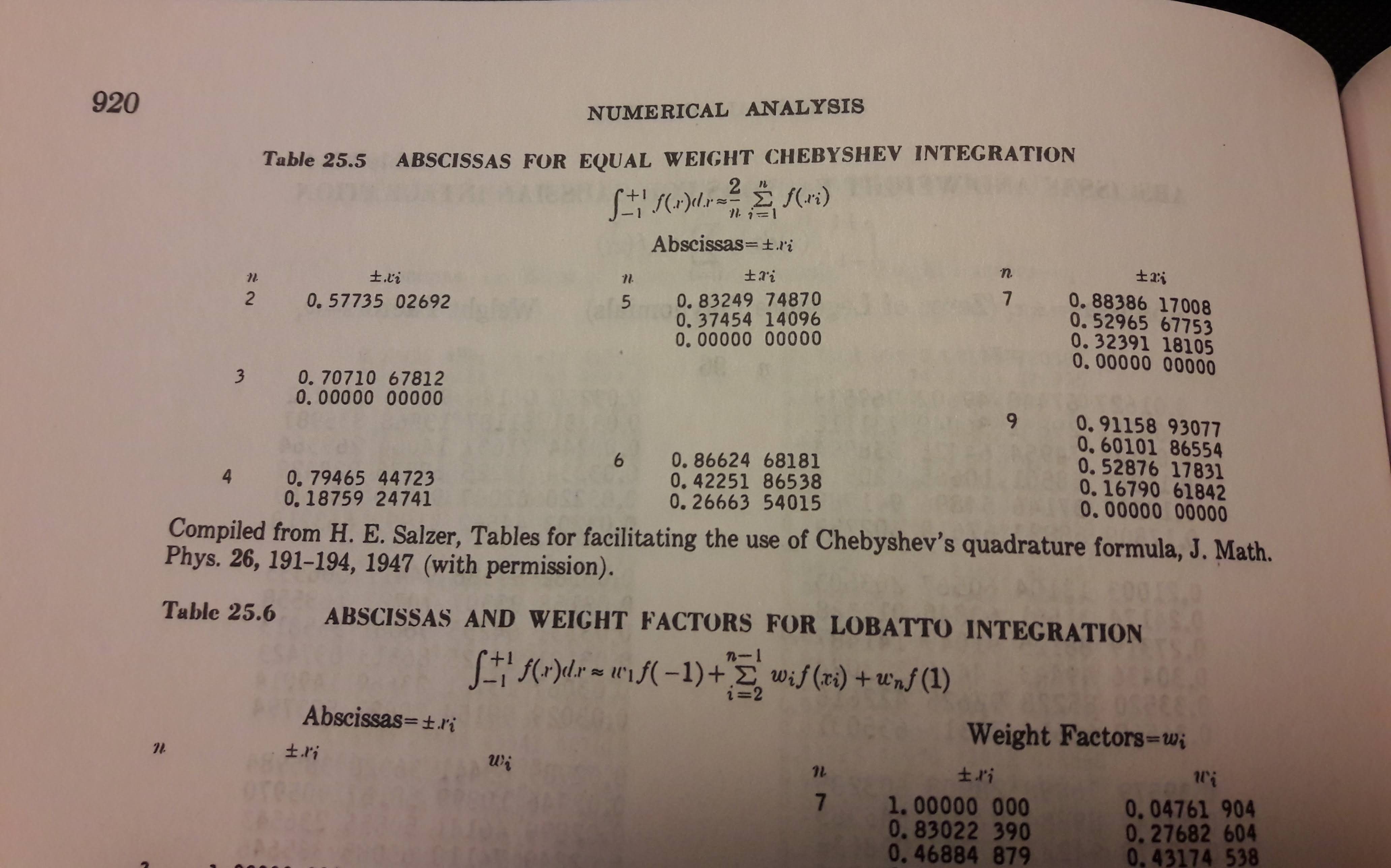 Anything useful, readers in the OpenSees universe? Or should equal weight Chebyshev integration remain buried in the A&S reference book?