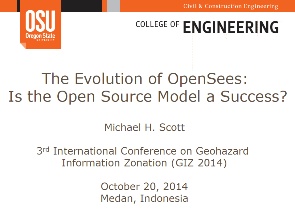 The seeds for the Palermo presentation came from a presentation I gave in 2014 in Medan, Indonesia. No video, but the PDF has some nice nuggets of OpenSees information.