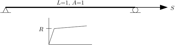 For the second approach, a finite element model of the bar is built with length and cross-section area both equal to one. Because OpenSees solves equilibrium, evaluating the performance function, g=R-S, is not very meaningful. Instead, the force-deformation response of the bar is defined as bilinear with yield strength R and the performance function becomes g=R/k-U where k is the bar stiffness and U is the bar displacement. Because the bar is statically determinate, the magnitude of the bar stiffness doesn’t really matter.