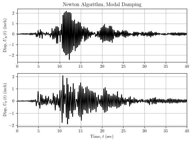 Someone asked, “What do the results look like with damping?” Put on the spot, I didn’t have time to find, copy, and paste into the script the code for computing the Rayleigh damping coefficients. Instead, I did modal damping by adding two lines to the script.