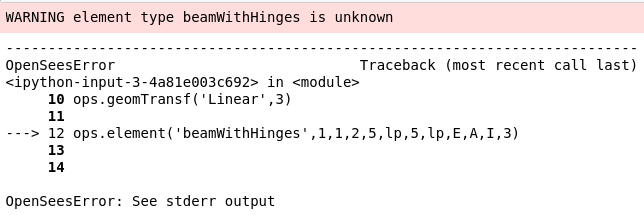 As far as I recall, no one has reported (at least not to me) a problem with not being able to use beamWithHinges in OpenSeesPy. I would like to attribute the non-reporting to the more flexible alternative with beamIntegration and forceBeamColumn being widely known and accepted, and not me imagining a problem that doesn’t exist. So, if you have encountered this problem, let me know in the comments section below.