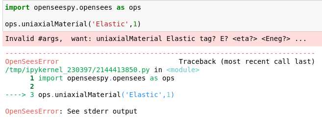 You have undoubtedly seen the OpenSeesError Exception raised in your scripts. For example, when you have insufficient or incorrect inputs to a material model.