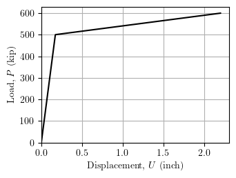 Ramping the applied load up to 1.2 times the yield load gives the load-displacement response shown below.