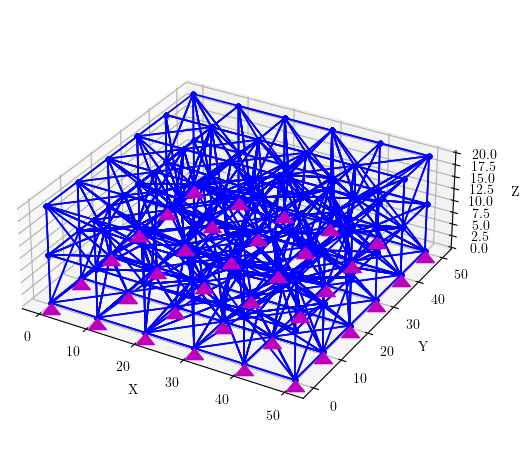 Be sure to impose boundary conditions after applying the self-weight; otherwise, you will under count the total weight of your model because the loop ignores constrained DOFs which have equation number -1. The check on negative equation numbers is not entirely necessary if you haven’t yet imposed boundary conditions, but the check prevents you from getting unexpected results if you have imposed boundary conditions. Python uses index -1 as the last list entry.