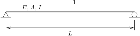 Consider a beam with simple supports. The beam section is elastic with E=29000 ksi, A=20 in2, and I=1200 in4.