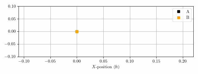 There’s more than one approach to modeling this problem in OpenSees. I used three nodes–a node for block A, a node for block B, and a reaction node. All three nodes are at the same location. Although it could be taken into account, the initial length of the spring is not important.