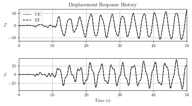 A simple two-DOF model is shown below along with interpretations of the uniform excitation (UE) and effective force (EF) approaches.