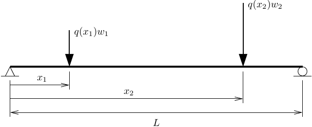 However, we can use quadrature to turn the analytical loading into a series of point loads. Because the loading function is quadratic, we can use as few as two Gauss points to make a statically equivalent loading.