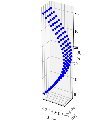 After some low-level gymnastics mapping equation numbers from the critical eigenvector back to nodes of the OpenSees model, we can view the buckled shape.