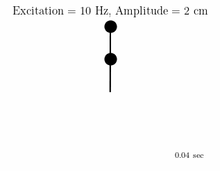 Consider the DIP shown below in the upright (inverted) position. The DIP is controlled by vertical base excitation, e.g., imparted by a motor with adjustable amplitude and frequency.