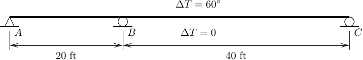 To confirm the implementation still works today, I used Example 7.3 from J.C. Smith’s Structural Analysis. The model is a two-span continuous steel beam heated 60 degrees Fahrenheit more on the top than on the bottom.
